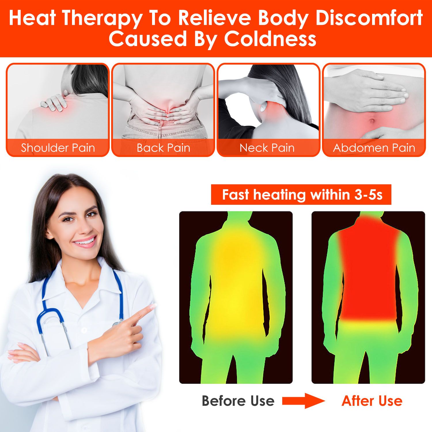 *3 Temperature Levels & 2 Power Switches*:Come with 3 levels of temperature ranging from 38℃/100.4℉ to 48℃/118.4℉ to 53℃/127.4℉ and individual belly and back heating control,so you can customize your comfort on the go. If you start to feel too warm,simply turn it off and enjoy it as a regular piece of outerwear.