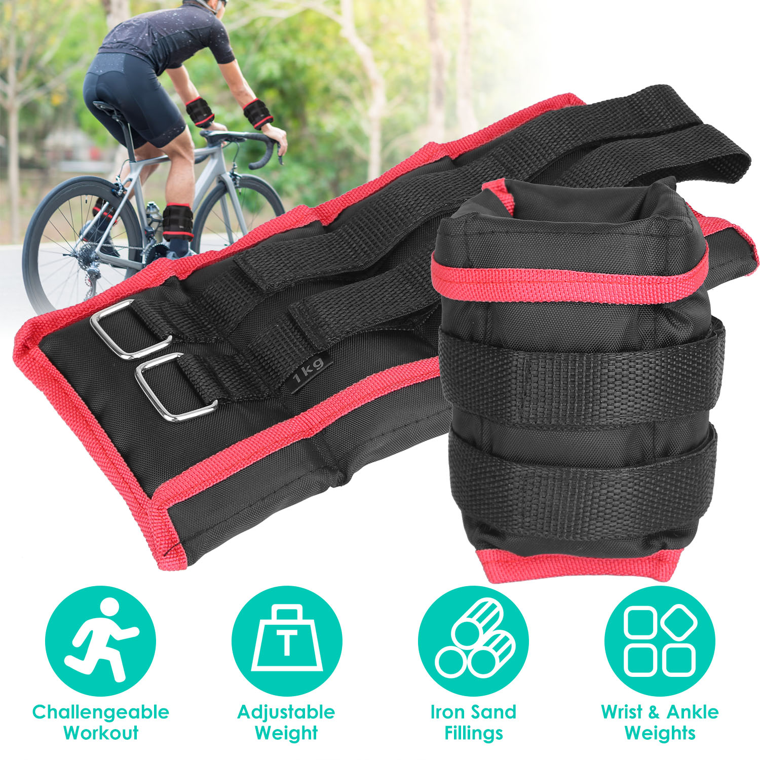 Our ankle weights come with 2.2lbs*2 and 4.4lbs*2 different capacity, give you flexible options to purchase. Filled with iron sand, it can be used for both wrist and ankle to add extra weight to make your exercise more challengeable. Designed with detachable sandbags, just open and remove them to adjust your training intensity. Beginner-friendly ankle weights are made of wear-resistant oxford cloth, reliable material which is suitable for different workouts, like jogging, running, sprinting, etc..