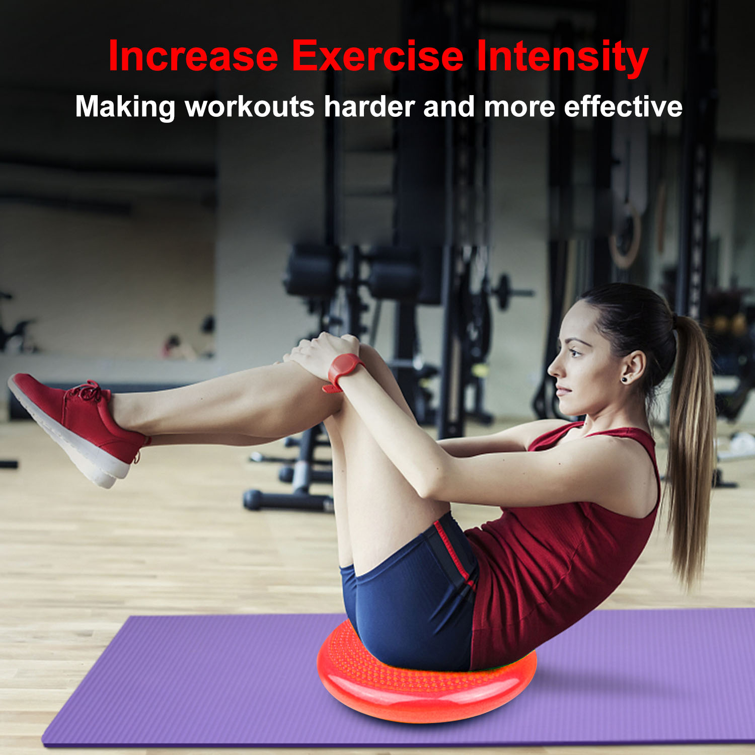 Do you feel back pain when long hours working in the office? Want to find a way to scorch your calories effectively? Our balance disc is designed to improve stability and coordination, strengthen the core muscles and enhance aerobic fitness program. It adopts anti-burst PVC material to offer good weight capacity up to 661lbs/300kg, leak-free and durable. The balance disc is available in color of Purple, Blue, Green, Hot Pink and Red to suit your different demand. What’s more, we offer you a free air pump to help your inflate the balance disc easily, easy to carry.