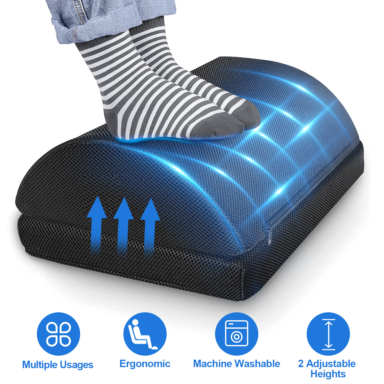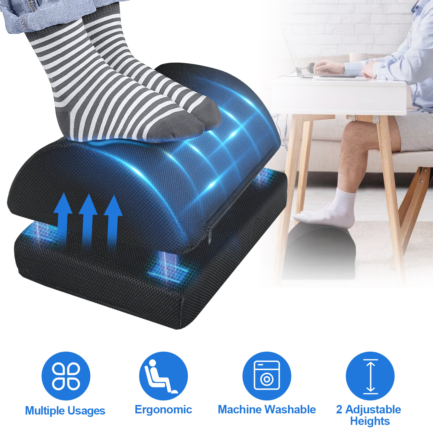 Under Desk Office Footrest Memory Foam Ergonomic Footrest Washable Foot Rest with 2 Adjustable Heights for Home Office