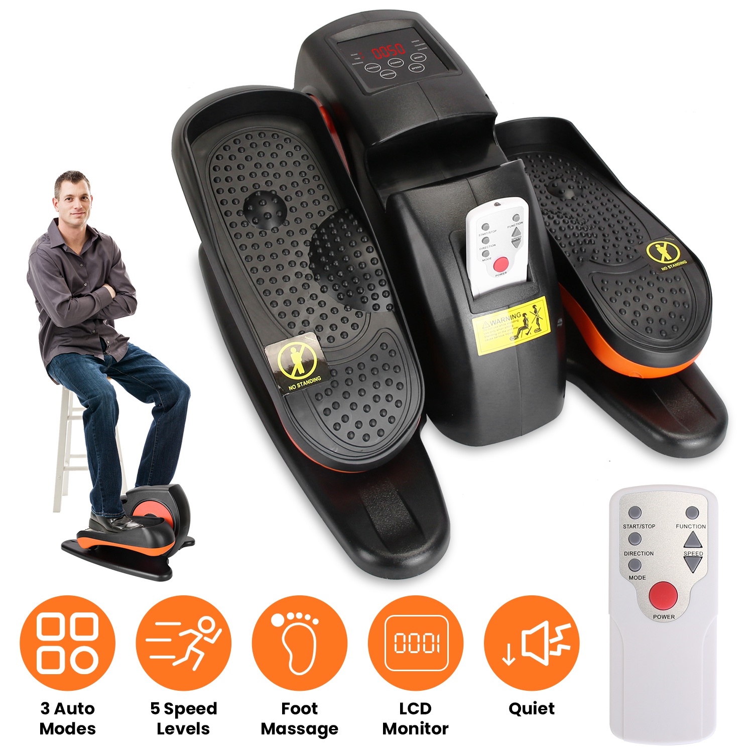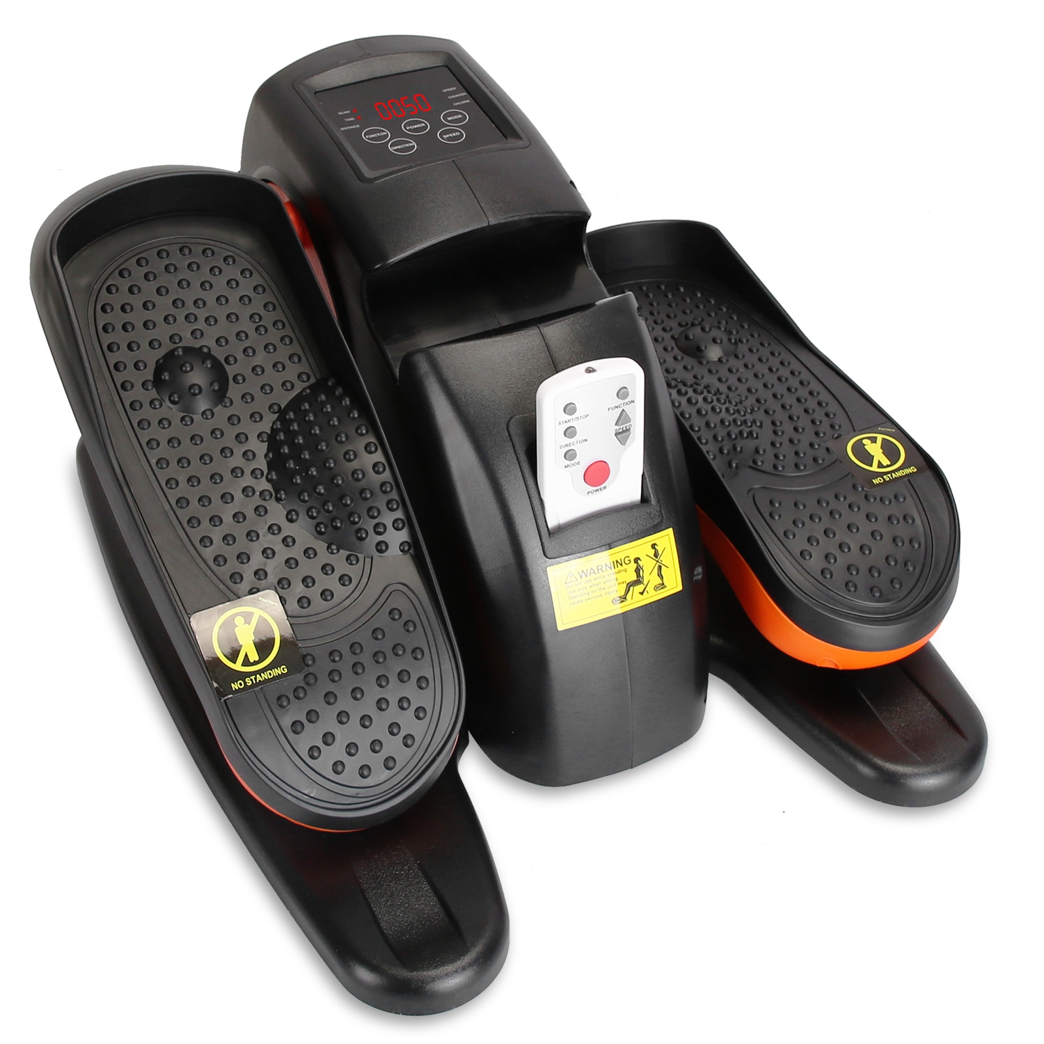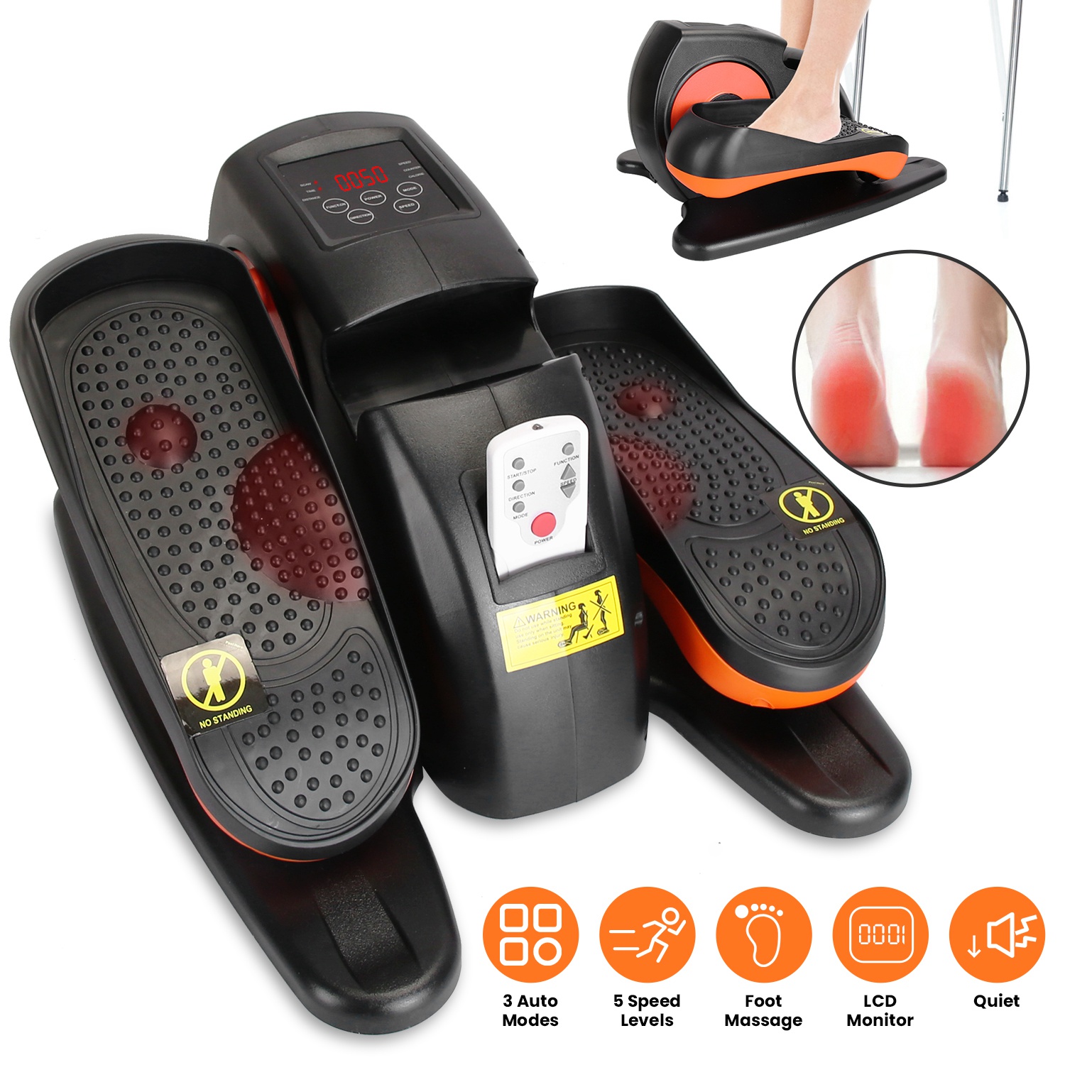 Are you looking for a discreet and effective way to stay active throughout the day? With 5 speed levels and 3 auto modes, this under desk elliptical machine caters to various fitness levels and can be used for gentle rehabilitation exercises, maintaining mobility for seniors, strengthening body training for white collar workers or providing a challenging cardio session for athletes. Easy to operate with the remote control. The built-in digital display keeps you informed of your workout metrics, such as speed, time, distance, calories burned, and more, helping you to stay on track with your fitness targets. Invest in your health and wellbeing with this seated pedal exerciser--a compact, versatile, and convenient way to keep moving, no matter where you are.